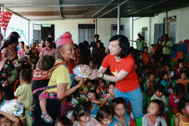 Trao tặng bà con những phần quà bánh cho niềm vui ngày khánh thành thêm trọn vẹn
