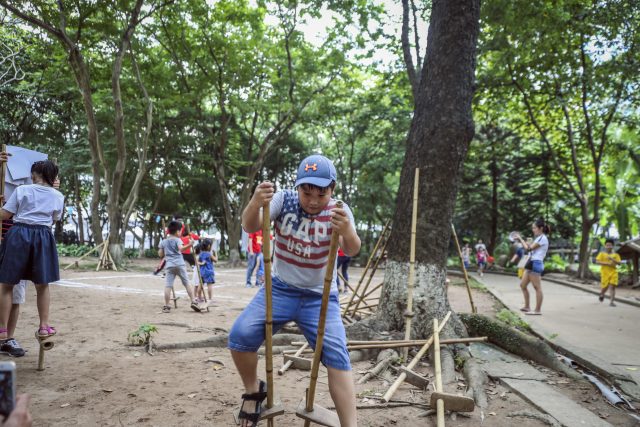In addition to the activities carried out by the organizers, the children were free to explore and experience cultural activities such as walking on stilts, weaving, making pottery, etc. within the framework of Ninh Thuan Cultural Festival organized by the museum. organization museum.