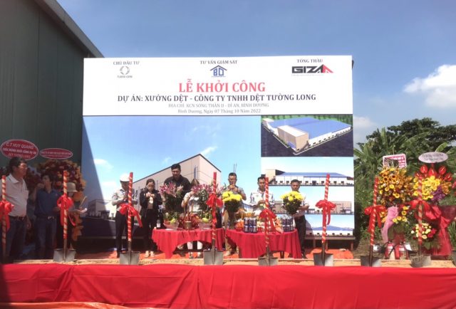 Sáng nay, Giza phối hợp với Chủ đầu tư tổ chức Lễ khởi công Dự án Nhà máy Dệt Tường Long tại Khu công nghiệp Sóng Thần II – TP Dĩ An – Tỉnh Bình Dương. Giza tham gia với vai trò Tổng thầu Thiết kế và Xây dựng (D&B).